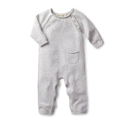This organic cotton sweater knit romper offers all-in-one dressing for your baby. This item features soft rolled edges, a tiny pocket, and buttons at the legs and shoulder. Fine gauge yarns allow for maximum softness on both the outside and inside of the garment.