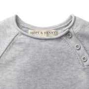 This organic cotton sweater knit romper offers all-in-one dressing for your baby. This item features soft rolled edges, a tiny pocket, and buttons at the legs and shoulder. Fine gauge yarns allow for maximum softness on both the outside and inside of the garment.