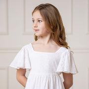 Your girl will love wearing this light and airy organic cotton eyelet dress to every occasion on her calendar, from play dates to parties alike! Features flowy flutter sleeves, an empire waist, v-back with zipper closure for easy dressing, and is fully lined. A fun and fresh dress for all of spring's special occasions.
