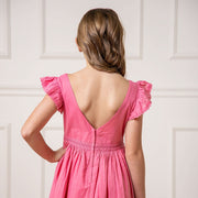 Our pretty tiered dress cut from lightweight organic cotton batiste will give your girl the ultimate wow factor. Features flutter sleeves, tiered maxi skirt layers, and a cute v-back with zipper closure. Beautiful crochet details adorn the bodice, waist, hem, and sleeves. Fully lined in organic cotton. This one is a beauty to take her through the spring and summer seasons!
