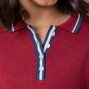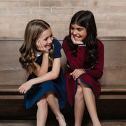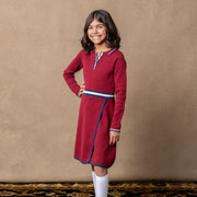 Our collared sweater dress exudes preppy schoolgirl perfection for fall. Crafted from soft organic cotton, this dress features a pointed sweater knit collar, contrast tipping, a faux wrap detail, and a henley button placket. A sporty yet feminine look she'll want to wear time and time again.