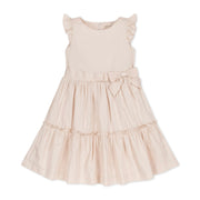 Our festive party dress will have your girl holiday-ready in no time! Cut from soft organic cotton sateen, this perfect piece features feminine flutter sleeves, a tiered twirly skirt, waist sash with bow, and a zipper down the center back for easy dressing. Holiday season, here she comes!