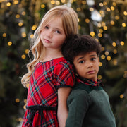 Cut from soft and chic organic cotton calvary twill in a classic silhouette, this pretty dress will be your girl's go-to piece for picture time. Features flattering puff sleeves, a rounded neckline, and velvet trim at the waist sash and bow. Lined in the bodice with a zipper closure down the center back.
