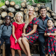 Talk about making an entrance this holiday! Cut from soft organic cotton in a timeless silhouette, this pretty dress will be your girl's go-to piece for picture time. Features a ruffle collar, sweet cap sleeves, and a waist sash with bow. Fully lined with a zipper closure down the center back for easy dressing.