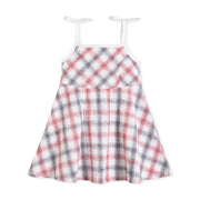 Your girl will be sweet and summer ready in our flowy navy & red checked sundress, styled with bow details at the shoulders in our soft organic cotton and linen blend. Features a zipper closure down the center back for easy dressing and is fully lined in cotton. Look out summer, here she comes!