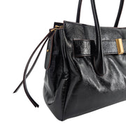 Elevate your everyday style with The EMERALDA Polished Black Top-Handle Satchel. This isn't just a bag; it's a statement of refined elegance. Crafted from lustrous black leather, the EMERALDA boasts a sleek and structured silhouette that's perfect for the modern individual on the go.