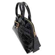 Elevate your everyday style with The Niky Polished Black Top-Handle Satchel. This isn't just a bag; it's a statement of refined elegance. Crafted in Italy from lustrous, pressed leather to give a distinctive crocodile-skin texture, The Niky boasts a sleek and structured silhouette that's perfect for the modern individual on the go.