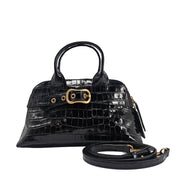 Niky Black Moc Croc Leather Mini tote Bag