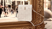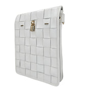 Experience the epitome of Italian craftsmanship with the Woven Crossbody by Madison Maison. Handcrafted in Florence from exquisite calfskin leather, this bag boasts a captivating woven design and a signature Joan Hornig lock. With its adjustable crossbody strap (13-25" drop) and spacious interior (8.5" x 10" x 1.5"), it effortlessly transitions from day to night. Available in classic black, rich chocolate, pristine white, and deep navy blue, the Florence Woven Crossbody is a timeless investment piece that complements any style.