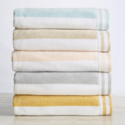 These beach towels feature your classic cabana style with a modern twist in a tasteful pastel color palette. The borders of these towels feature a horizontal striped design that sets these towels apart from the classic, everyday style. Attractively designed, these towels offer supreme comfort from the 100% cotton and modern style that will enhance your beach aesthetic. Relax in the sun on your vacation with beautiful, ultra-soft pool towels. The durability, absorbency, and classic style make them perfect for any summer traveling, vacation, or camping.