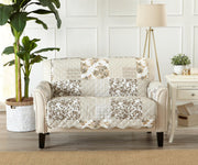 A furniture protector is the best way to refresh your living room furniture without any renovations. This cover features a floral patchwork pattern with clean box-stitching detail. Easily place this protector over your furniture and secure it with the elastic straps - this cover will protect your furniture from everyday life with kids and pets. Update your living room decor and protect your furniture all with one cover.