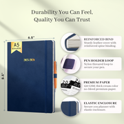 • 🔎 Functional Details - 8.5" x 11" Weekly & Monthly Pages | Leather Cover | Round Corners | Elastic Closure Band | 100 GSM Thick Paper | Ink Resistant Paper | Planner Section | Weekly to do Section | Notes Section | Holidays | World Map | Bookmarking Ribbons | Pen Holder | Reference Calendars