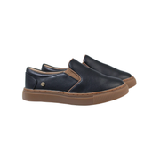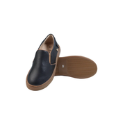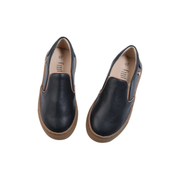Black leather step in shoe/ brown trim.