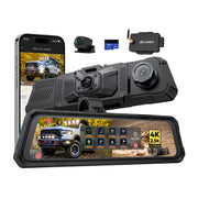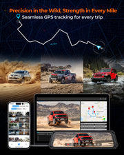 The Legend 2ch Bundle is an advanced rearview mirror camera system crafted to enhance safety, durability, and convenience for off-road enthusiasts and daily drivers. This U.S. patented Legend 2ch Bundle features a 12-inch IPS HD display with 2.5D curved touchscreen glass, reducing glare and enabling intuitive power switch control to simplify device management. As the only IP67-rated mirror, the Legend 2ch Bundle withstands high-pressure water jets, dust, and shock, with an integrated design, a vibration-absorbing buffer layer, and a large heat sink for reliable performance from -4°F to 158°F. Its front camera, with a starlight-grade CMOS sensor and 6 all-glass wide-angle lenses, captures 4K video (3840×2160P), while the rear delivers 2.5K video (2560×1440P) with WDR and a 170° lens, reducing blind spots with enhanced night vision. Supporting 256GB storage, the Legend 2ch Bundle ensures worry-free recording. With WiFi, GPS, a supercapacitor, 9V-30V power range, a free 64GB card, and a 2-year warranty, the Legend 2ch Bundle is ideal for cars, trucks, SUVs, and UTVs.