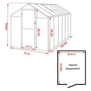 [06X12FT] Premium Polycarbonate Gray Walk-In Greenhouse Kit With Adjustable Vent And Lockable Door (SAK35264)