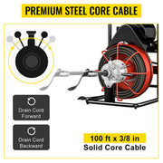 [100FTX3/8"] Electric Sewer Drain Cleaner Snake Clog Machine W/ Cutter (SAK53785)