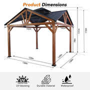 [12X12FT] Alora Premium Outdoor Cedar Wood Hardtop Gazebo With Galvanized Steel Roof (SAK31864)