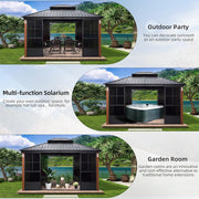 [12x14FT] Large Heavy-Duty Outdoor Aluminum Patio Hard Double Steel Top Backyard Sun Room Gazebo (94625371)