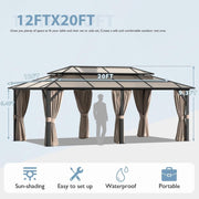 [12X20FT] Alora Premium Aluminum Outdoor Polycarbonate Hardtop Gazebo With UV Protection, Netting & Curtains (96815273)