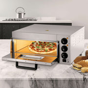 Unlike tradition pizza cookers, this commercial pizza oven features a robust stainless steel exterior that not only allows for easy cleaning, but also ensures that the electric pizza oven will last for years to come. Better yet, the indoor pizza oven is equipped with a glass window and a lighted interior that allows you to see your delicious pizza cook.