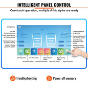 - Equipped with concise control panel with clear digital temperature display, on-off switch, separate mixing switches, two modes and cylinder indicator buttons for carefree operation. Cold drink and slushy modes can be switched as need.