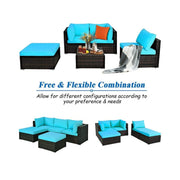 Transform your backyard, patio, or outdoor lounge into a stylish and inviting retreat with the Costway Outdoor Patio Rattan Turquoise Furniture Sectional Conversation Sofa Set 5PCS. This elegant and versatile set combines modern turquoise cushions with a durable rattan frame, offering both comfort and sophistication. Its modular design allows for effortless rearrangement to fit any outdoor space, while the high-quality materials ensure long-lasting performance. Perfect for entertaining guests, relaxing with family, or enjoying a sunny afternoon, this 5-piece sectional sofa set brings quality, versatility, and a touch of luxury to your outdoor living area.