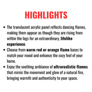 • Say goodbye to distracting reflections with the partially frosted acrylic panel, offering a pristine view of the dazzling flames while maintaining a true-to-life appearance.