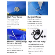 With its user-friendly inflation system, setting up the slide is effortless, giving you more time to indulge in unforgettable moments. Safety is a top priority, as the slide features an anti-slip ladder and secure anchoring system, ensuring peace of mind for both kids and adults. Its innovative design promises a splash-filled descent that’s both thrilling and luxurious.