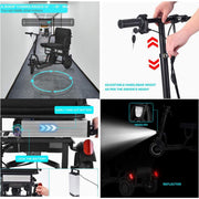 The control panel has an LED display so you can easily view speed, battery life, odometer readings, and temperature outside at all times. The armrests consist of padded foam for comfort and can be raised for easy side access too. And once folded it's only 14.5 inches wide by 21.5 inches high making it small enough to fit in most car trunks without the need for a pricey lift!