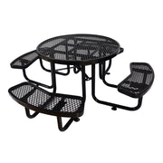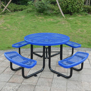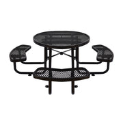 Elevate your outdoor space with the ultimate combination of strength and sophistication. Constructed from heavy-duty, powder-coated steel and featuring a thermoplastic-coated tabletop and benches, this 46” round picnic table is designed to withstand tough weather while delivering timeless charm. Whether rain or shine, its sturdy design ensures years of worry-free use, making it a reliable centerpiece for your garden, park, or patio.
