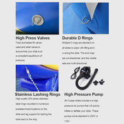 Designed for versatility, the slide effortlessly adapts to various yacht heights and inflates within minutes, thanks to the included high-quality air pump. Built-in handles improve balance and stability, making it ideal for fun-packed days at lakes, pools, and seaside venues. When the fun's over, the slide deflates and stores compactly for easy transport and storage, making it a must-have accessory for adventure-seekers on the go.