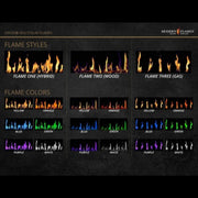 Indulge in customization like never before with three distinct flame patterns and a palette of six striking flame colors, allowing you to tailor your ambiance to suit any mood or occasion.