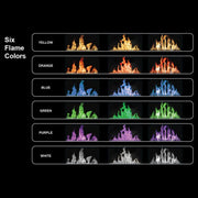 - Choose from three flame styles and six flame colors to match your mood or décor. With 18 different flame color displays and multi-color ember bed and downlighting, you can create a unique ambiance for any occasion.