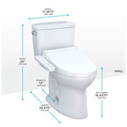 - Offers upgraded personal hygiene via the integrated WASHLET+ C2 bidet seat featuring warm-water front & rear cleansing, heated soft-close seat, warm-air dryer and air deodorizer.