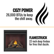 - Features a 22-inch deep firebox for a more immersive flame experience.