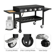 Portable Outdoor 4 Burner Propane Flat Top Gas Grill W/ Wheels, 60K BTU (SAK66104)