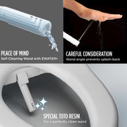 • Experience unparalleled hygiene with the TOTO S7A Washlet. Its advanced EWATER+ system and warm water cleansing provide a thorough clean, while the PREMIST feature ensures a pristine bowl surface before and after use.