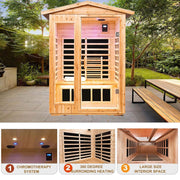 Experience spa-level serenity any day of the week. The Premium 2-Person Indoor Outdoor Low EMF FAR-Infrared Hemlock Wood Personal Home Sauna Spa, 1750W turns a corner of your home—patio, sunroom, or garage—into a restorative retreat.