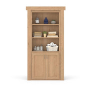 Constructed with an MDF Core and Alder Veneer, it arrives fully assembled and pre-hung in the jamb. Installs like a regular door!