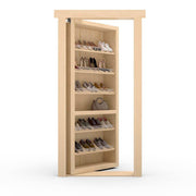 Take shoe storage and closet organization to the next level with our Shoe Rack Door. This unique storage solution fashionably displays shoes on five 12" deep shelves that easily accommodate shoes up to a men's 11.5.