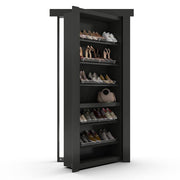 Take shoe storage and closet organization to the next level with our Shoe Rack Door. This unique storage solution fashionably displays shoes on five 12" deep shelves that easily accommodate shoes up to a men's 11.5.