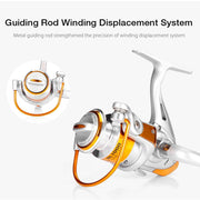 - This spinning reel is equipped with metal wire cup, plastic body, precision brass gear, brass main shaft and metal washer