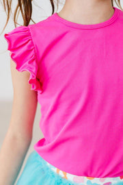 Hot Pink S/S Ruffle Tee
