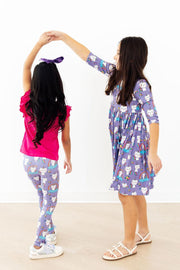 Our leggings are perfect for layering under dresses and skirts. Our founders designed these leggings when they could not find the perfect pair for Mila. Everything was either cut too low in the waist or fit too baggy in the leg.