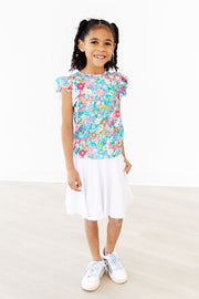 Our founders created the ruffle tee when they could not find the perfect basic tee for Mila. They wanted something simple but still girly. Our ruffle tee is perfect with skirts, shorts, leggings, or layering.
