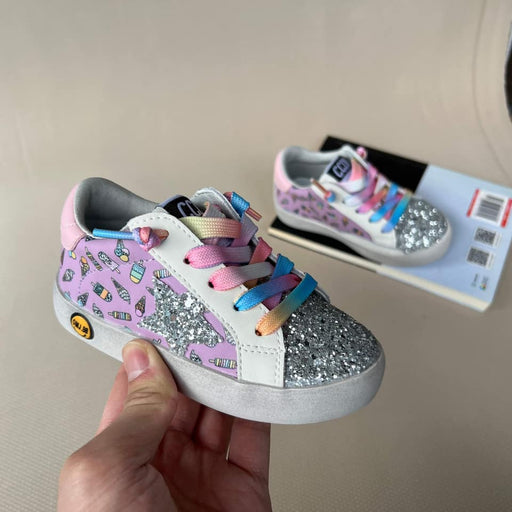 LOLITA-12Y Girls Glitter Rainbow Combat Boot SILVER ONLY