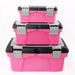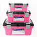 A TOOL BOX FOR EVERY NEED. Use them for tool storage, to organize craft supplies, small toys, fishing tackles, paints, pens, brushes, and more. The smaller box can even be used as a lunch box. The pink color is fun and attractive to bring anywhere.