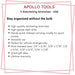 APOLLO HAND TOOL LIFETIME WARRANTY: Each tool is tested against industry standards for hardness, torque, finish and usability and should last a lifetime under normal use. Click on this link to register your Apollo Tools product.