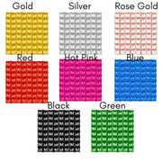 - Color Options: Gold, red, royal blue, hot pink, green, black, silver, and rose gold.