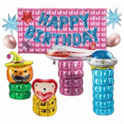 - Large, square-shaped foil balloons that offer an impactful visual delight, replacing the need for over 20 individual small balloons.